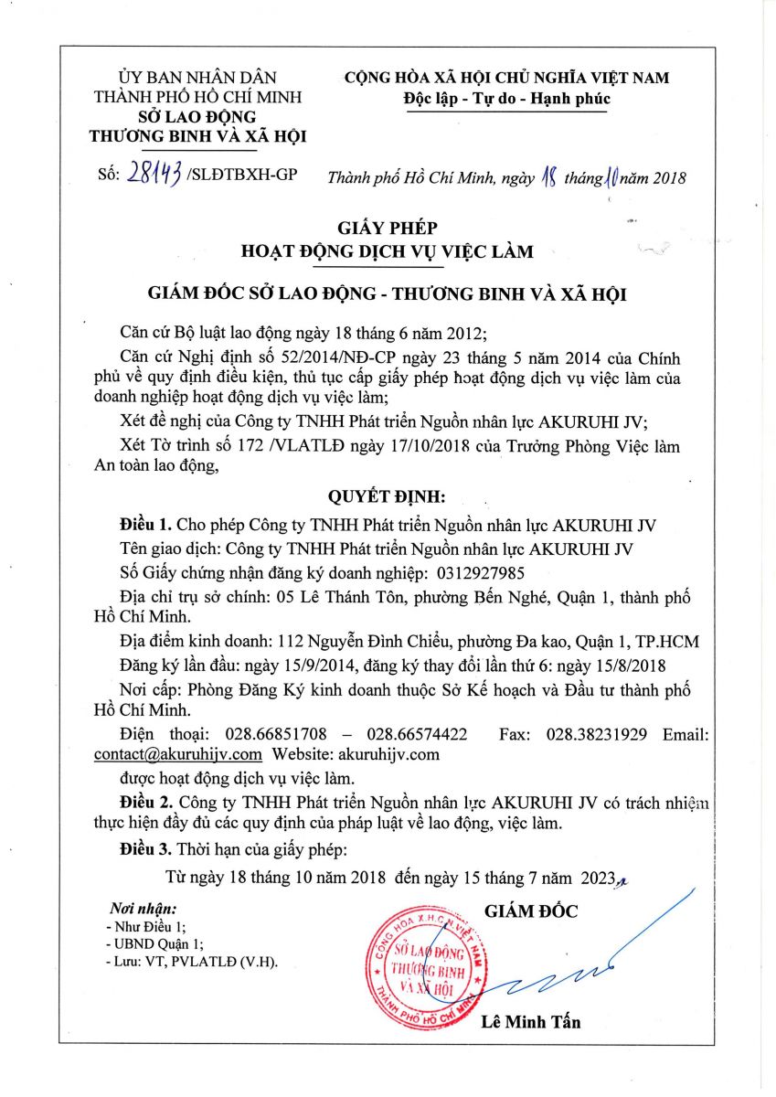 CÔNG TY AKURUHI JV ĐẠT CHỨNG NHẬN XẾP HẠNG DOANH NGHIỆP 5 SAO TỪ HIỆP HỘI XUẤT KHẨU LAO ĐỘNG VIỆT NAM (VAMAS) 2024