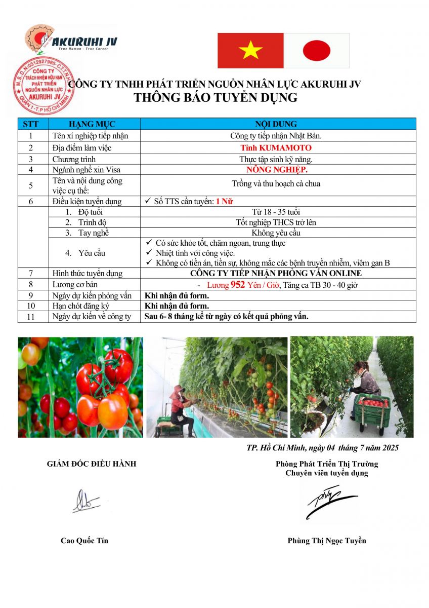 【TUYỂN DỤNG THỰC TẬP SINH TRỒNG VÀ THU HOẠCH CÀ CHUA】